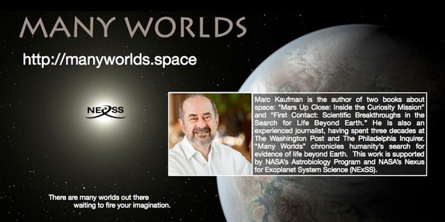 The search for life beyond Earth has gone beyond Mars, Europa and our solar system to the billions of planets now known to orbit distant stars. A new, NASA-sponsored website that will explore the science and scientists of this cutting-edge and fast-growing field debuts today (Tues) at the address www.manyworlds.space.
